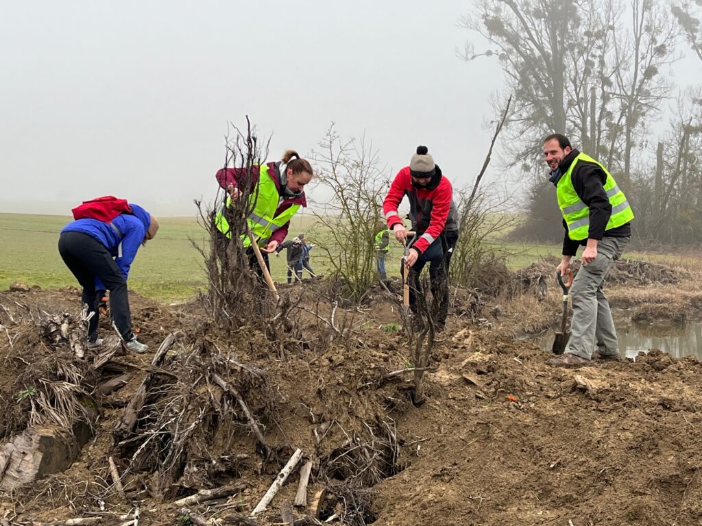 Les associations et entités Nature et Culture, le Bonheur est dans le pré, Espaces, la communauté de communes et le partenaire technique Haies Vives d’Alsace ont naturellement adhéré au concept. Ainsi, près d’une quarantaine de personnes issues du secteur ou de plus loin se sont présentées dès le matin, samedi 23 novembre, munies d’outils de jardinage afin de planter 250 arbres et buissons, entre autres, des chênes, des merisiers, des tilleuls, des saules, des églantiers ou cornouillers, aux abords d’une mare de 150 m2.